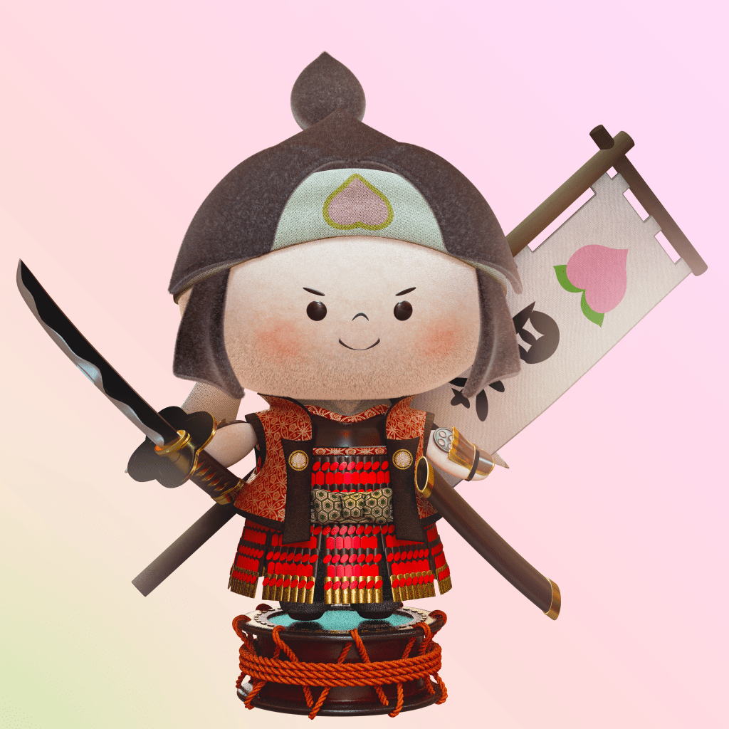 YO_NFT_ARTSでは赤い甲冑の勇ましい男の子としてデザインしています。